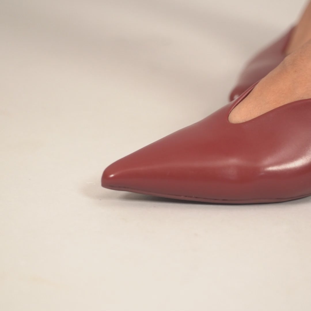 Minimalist yet striking, the Pointed Toe Wavy Burgundy Ballet features a sleek, closed-toe design. The pointed silhouette is elevated with subtle wavy edging, adding a modern twist to a timeless style. Designed for all-day ease, these ballets are versatile enough for semi-formal looks or casual everyday wear. With a refined finish and thoughtful details, they make a subtle yet memorable statement with every step.