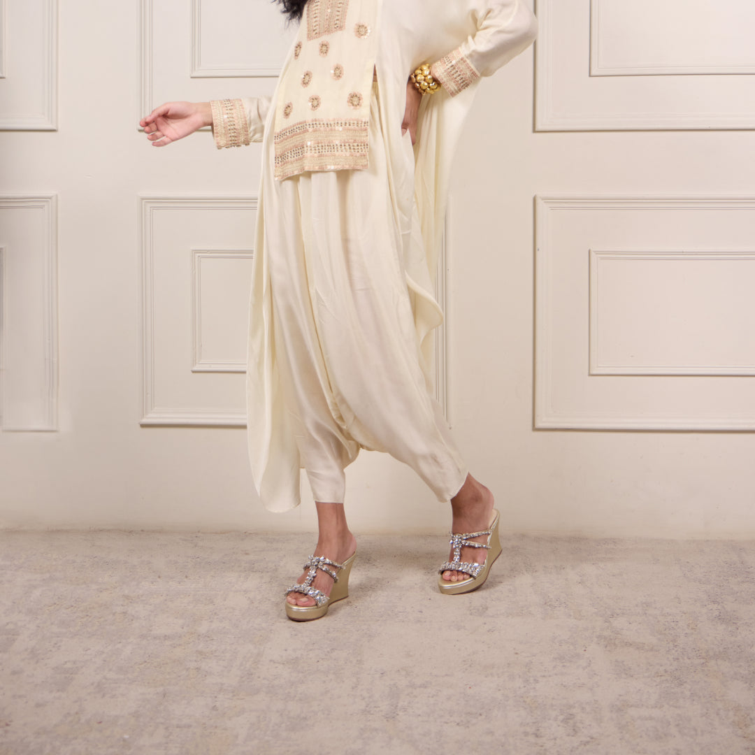 Step into radiant elegance with the Jewel Lifted Gold Wedge. Set on a gleaming gold base, this pair is adorned with jewel embellishments that bring a touch of sparkle and sophistication. The open silhouette keeps the look modern and versatile, while the cushioned insole and lifted wedge ensure comfort with every step. Perfect for weddings, festive soirées, or celebratory evenings, this wedge blends glamour and ease—designed to let you shine effortlessly from day to night.
