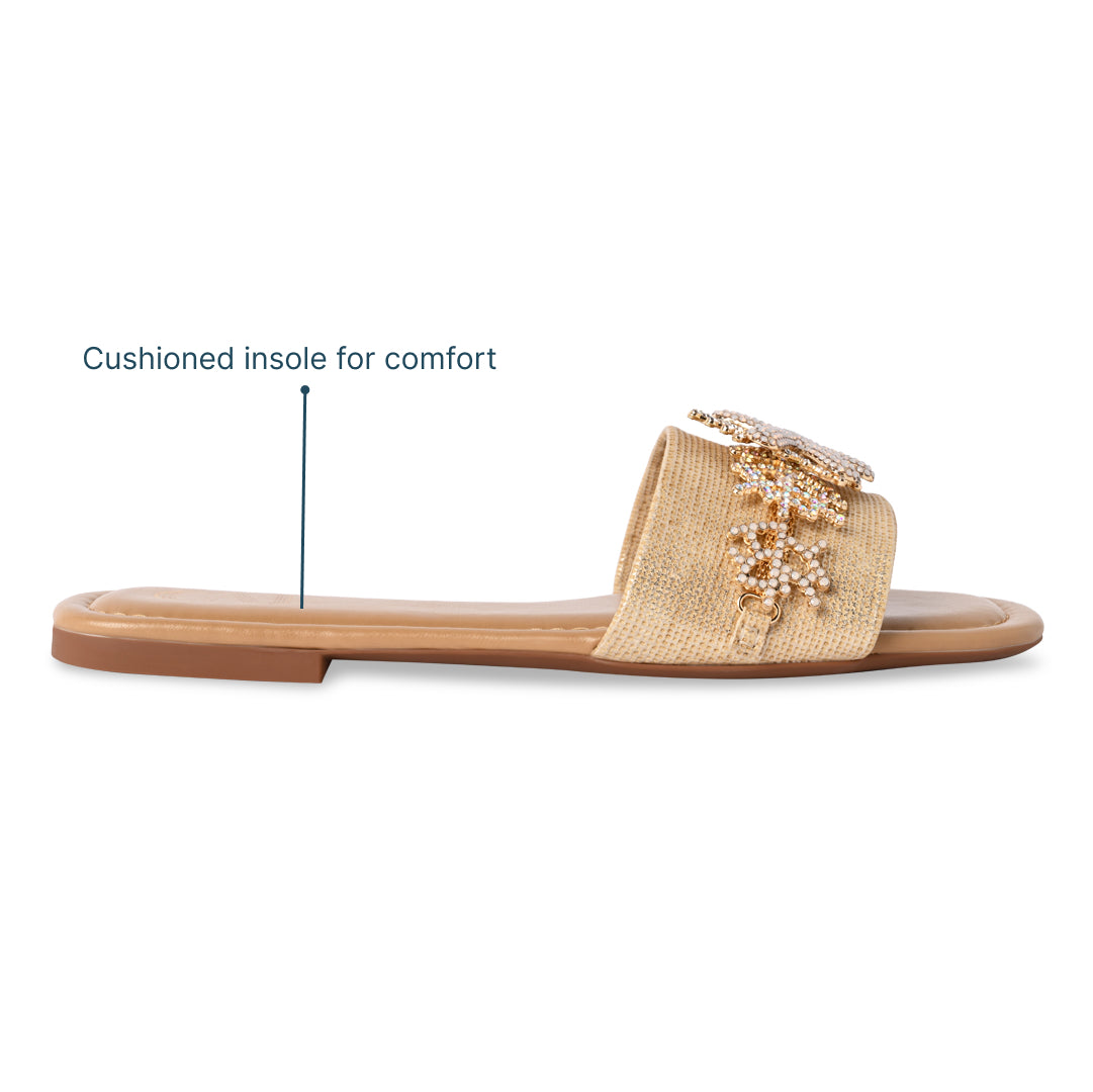 USP: Designed for effortless ease, these flats feature earthy jute straps with delicate starlit embellishments, a cushioned insole, and a lightweight sole.