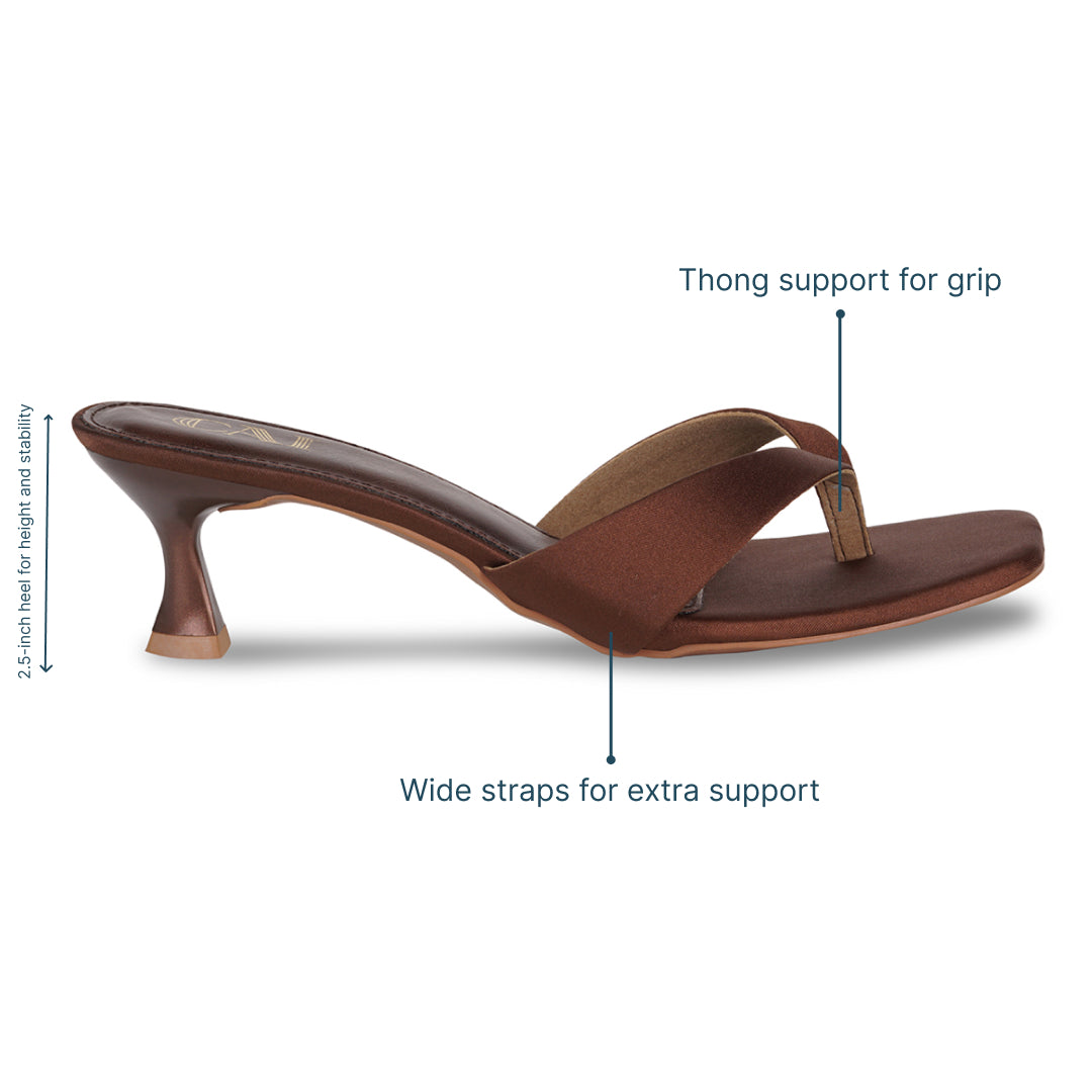 USP: Thong support for grip, wide straps for extra support with a 2.5-inch heel for height and stability.