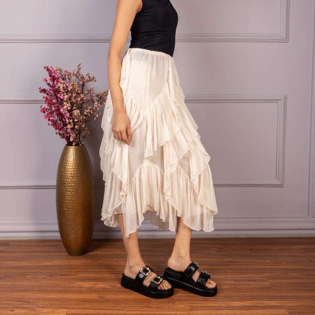 2. Modern Minimal: Pair with a tailored co-ord set—the clean lines of the outfit highlight the sleek straps, while the gold buckles add a touch of understated shine.