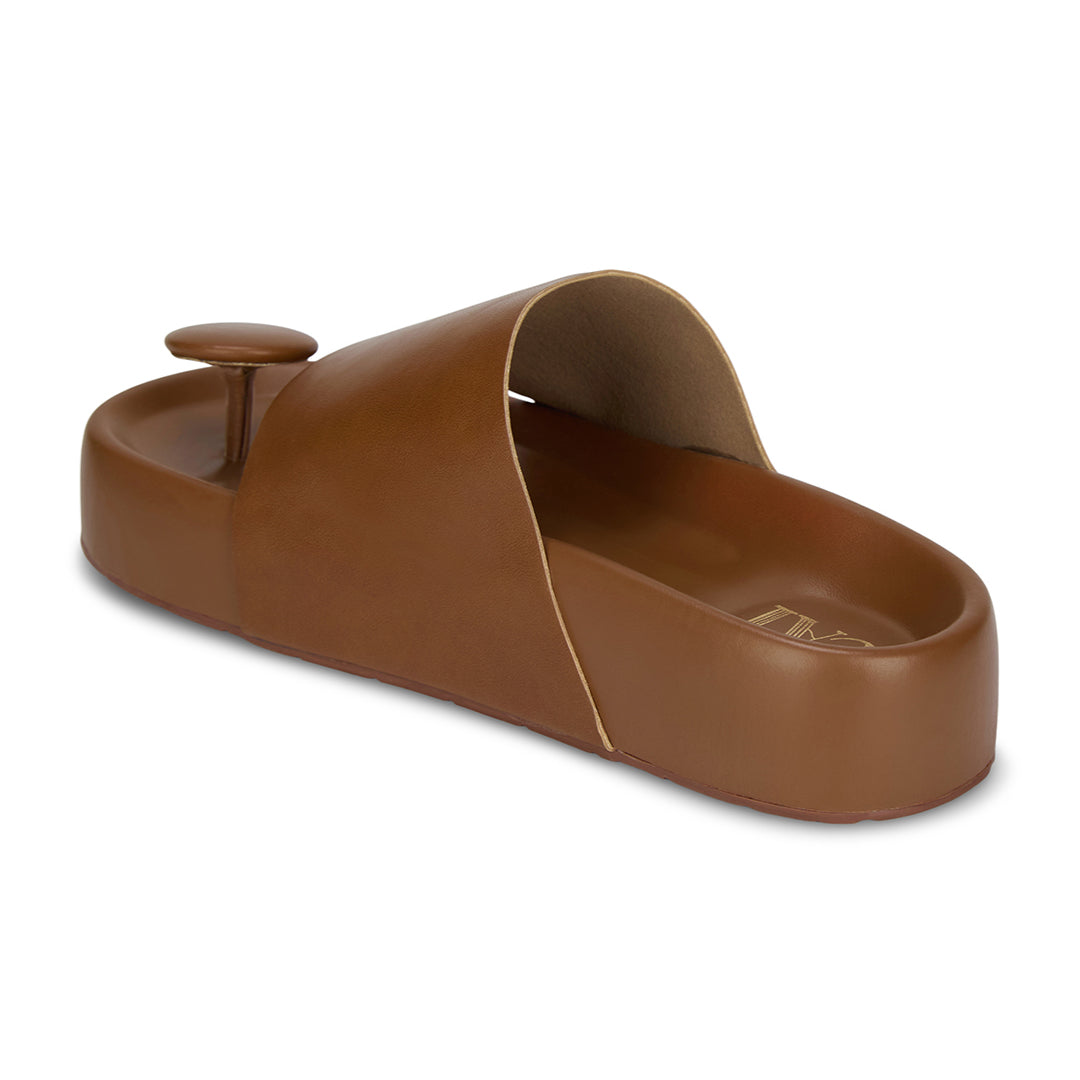 A bold nod to tradition with a modern twist. The Bobble Head Tan Thong Platform take cues from the classic paduka silhouette, reimagined with a contemporary platform base. Crafted in sleek black with a distinctive spherical accent at the toe post, this pair blends heritage charm with statement-making edge. The sturdy platform adds height without compromising comfort, making it perfect for pairing with both ethnic fits and fashion-forward outfits.