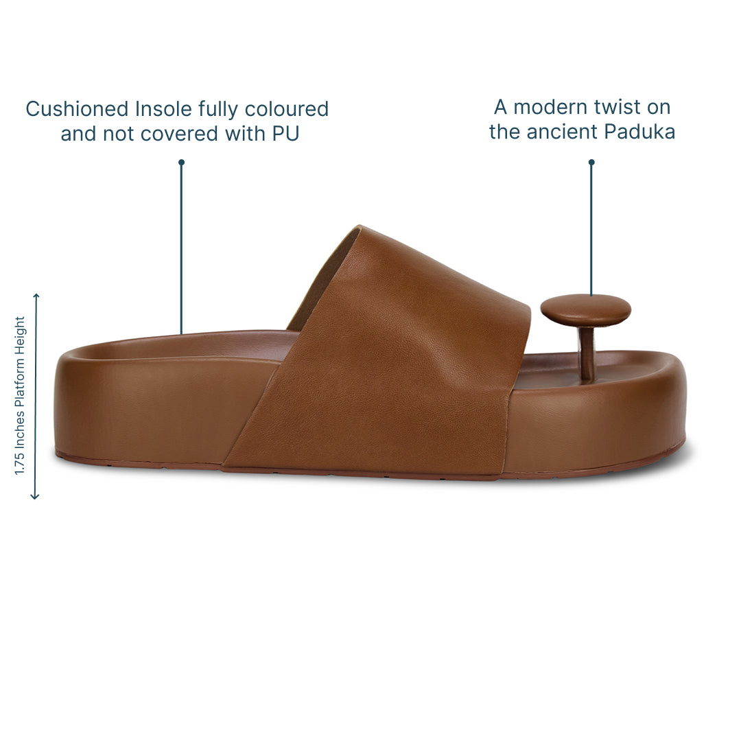 USP: A modern nod to tradition, reimagining the classic Paduka with a bold, contemporary edge. The platform is coloured and not covered thereby ensuring durability and the upper strap is soft and lined in suede.