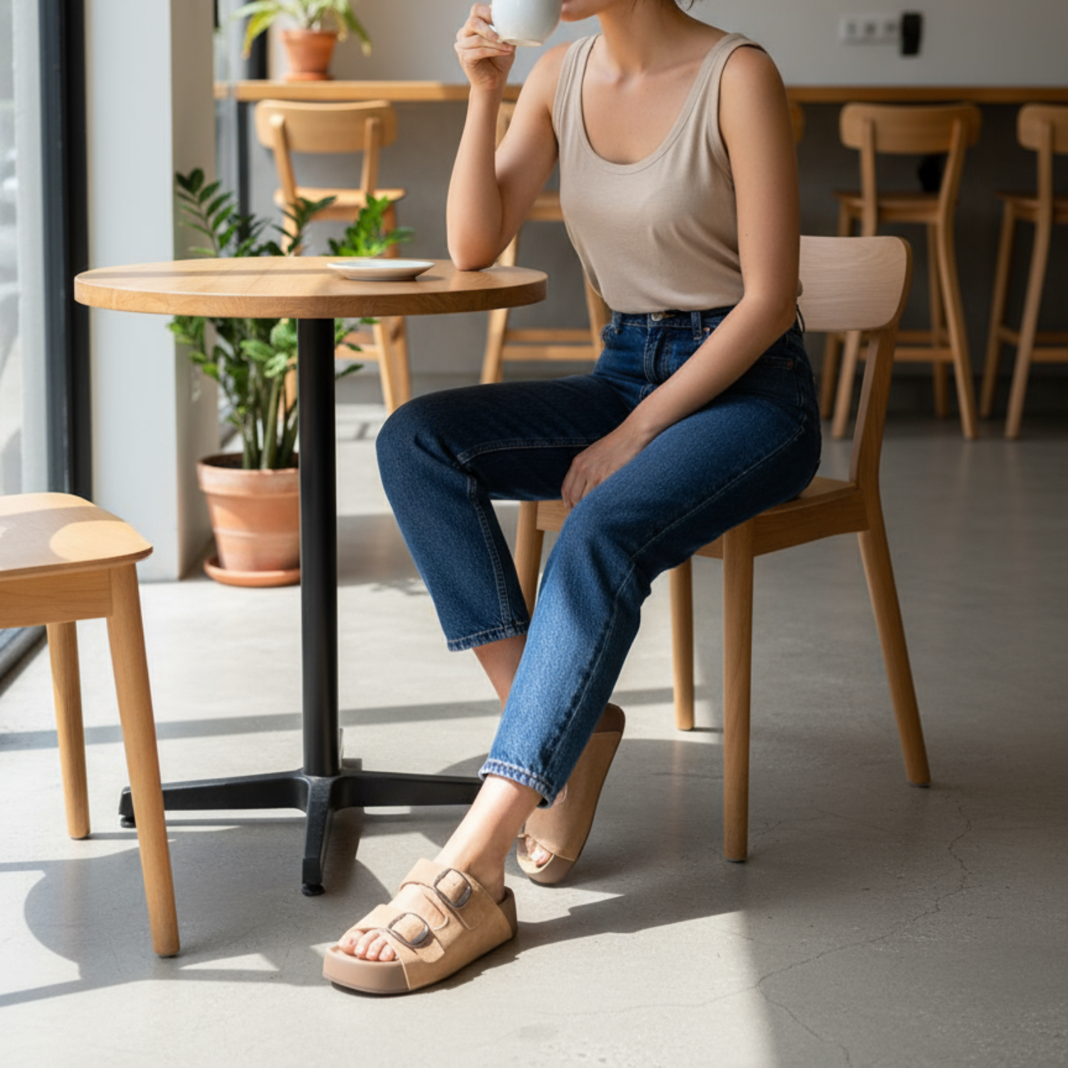 1) Casual Classic: Pair the sliders with light-wash denim jeans and a crisp white cotton shirt for a timeless and fresh look.