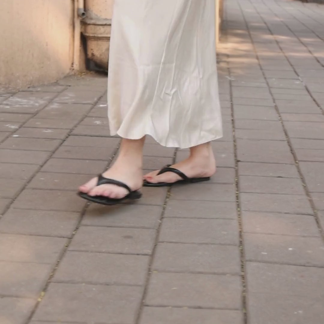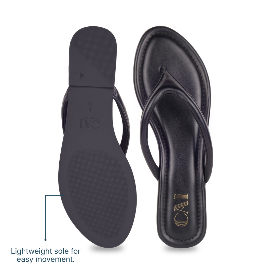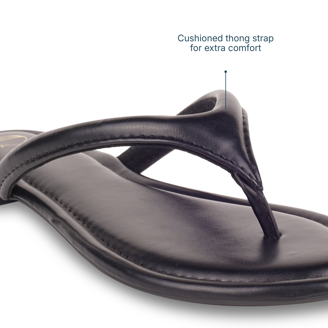 Sleek, refined, and designed for everyday ease, these Crest Black Flats feature a softly cushioned thong strap that offers gentle support with a barely-there feel. Finished with a smooth, flexible sole that moves naturally with you, they’re made to keep you comfortable through long days while maintaining a clean, understated look—perfect for effortless daily dressing.