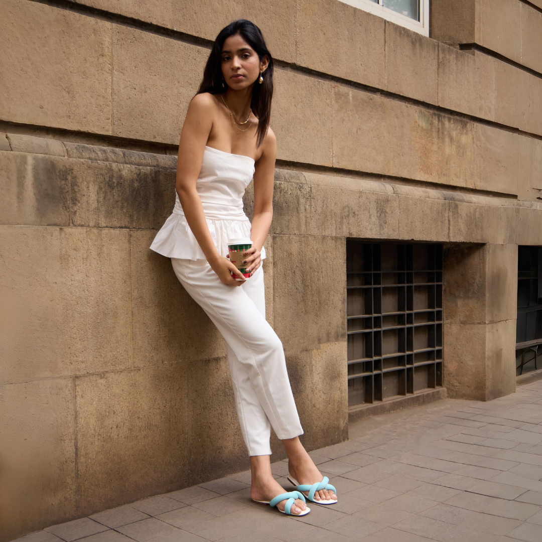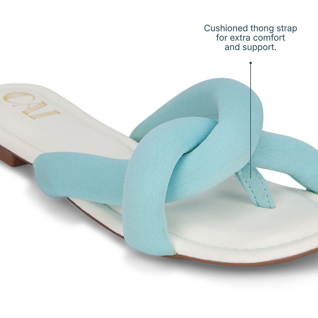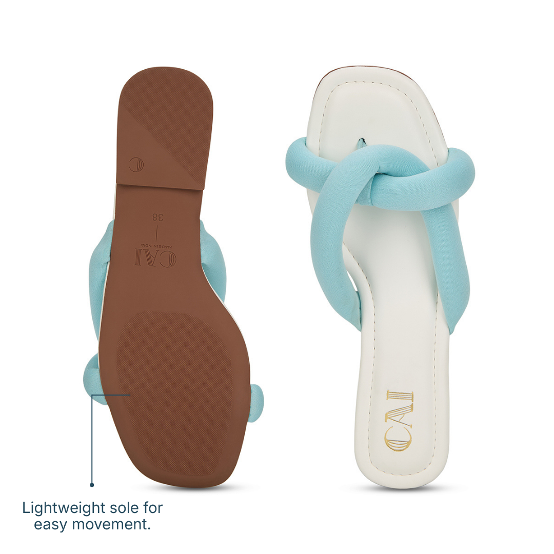 Soft, sculpted, and effortlessly chic, the CloudKnot blue flats are designed for all-day ease. The plush, padded upper gently hugs your foot while adding a bold, woven-inspired statement to the silhouette. Set on a smooth, cushioned base, they balance standout design with everyday comfort. Finished in a fun, vibrant summer hue, they instantly brighten your look and add a playful seasonal touch.