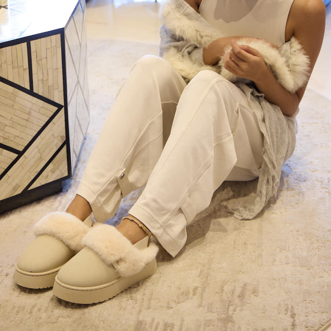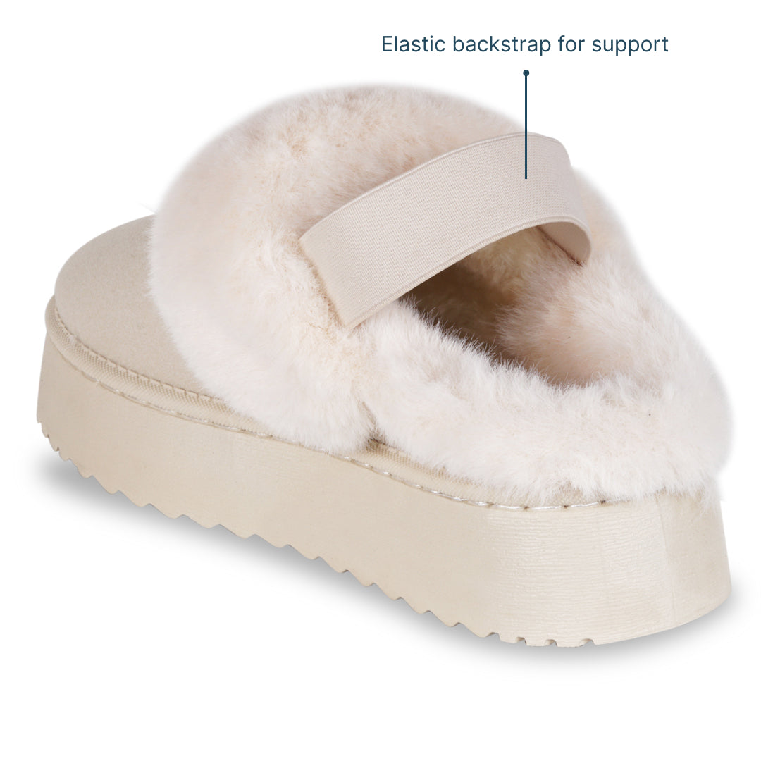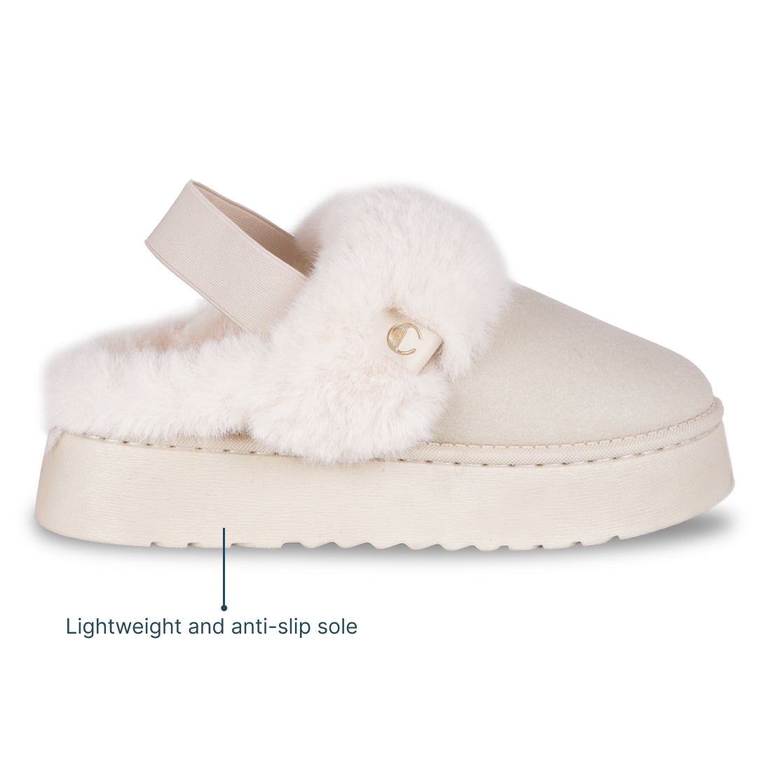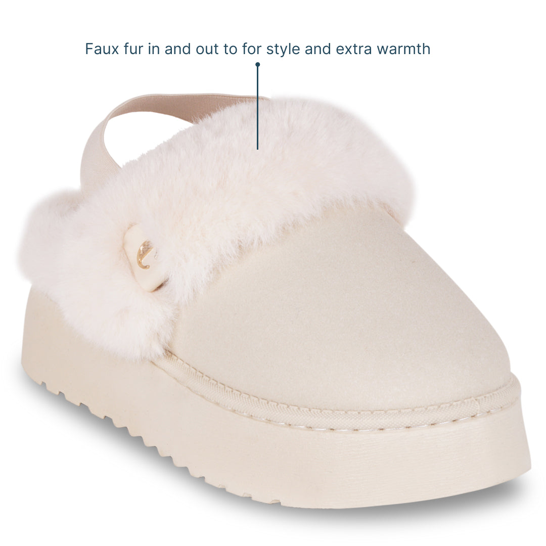 USP - Faux fur in and out to for style and extra warmth, Elastic backstrap for support and Lightweight and anti-slip sole.