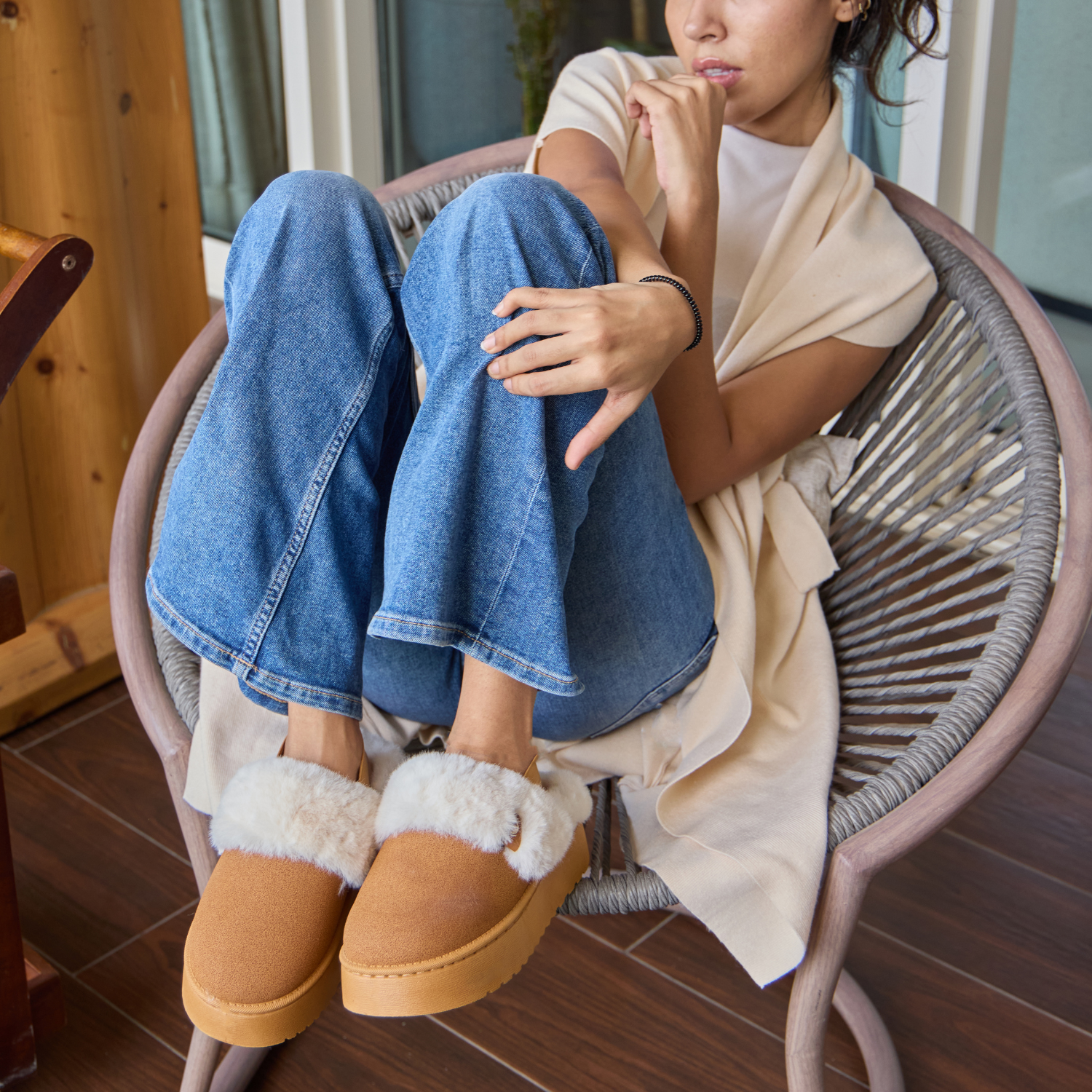 USP - Faux fur in and out to for style and extra warmth, Elastic backstrap for support and Lightweight and anti-slip sole.