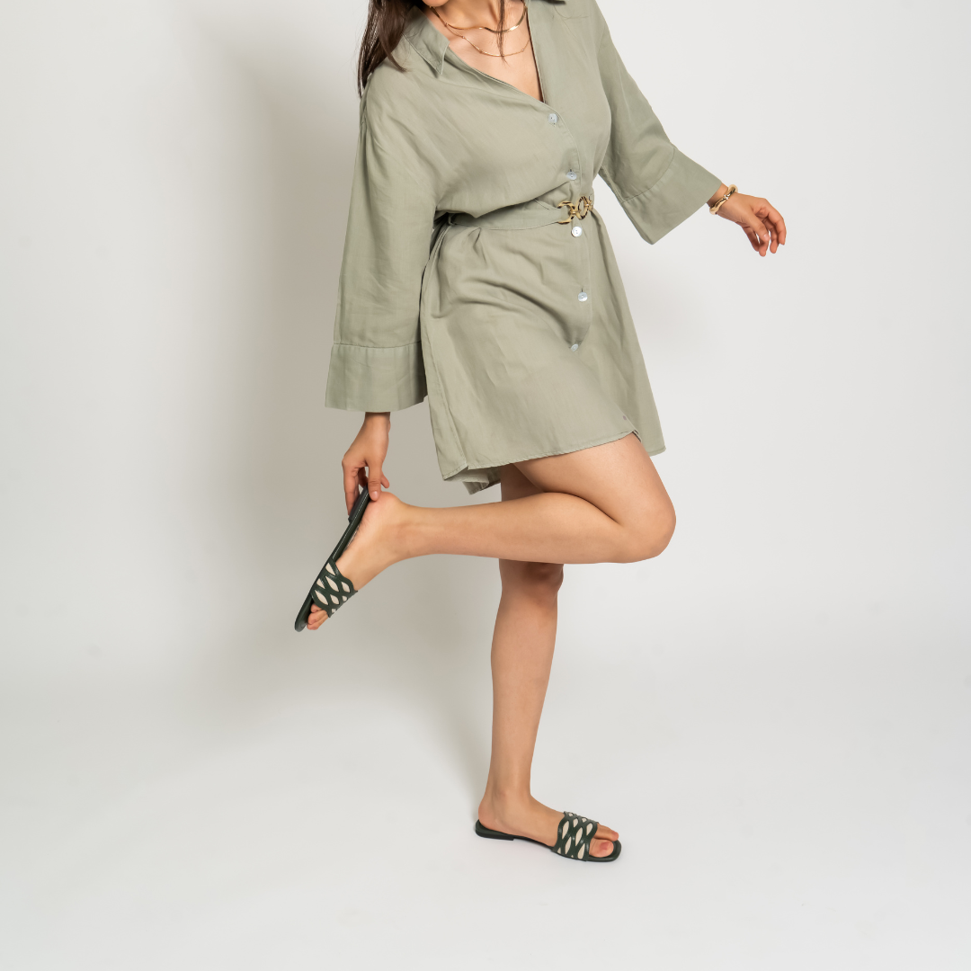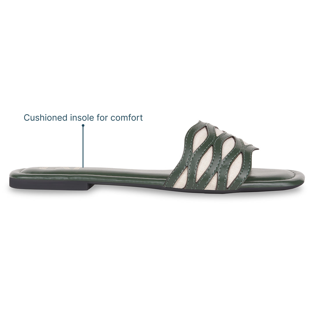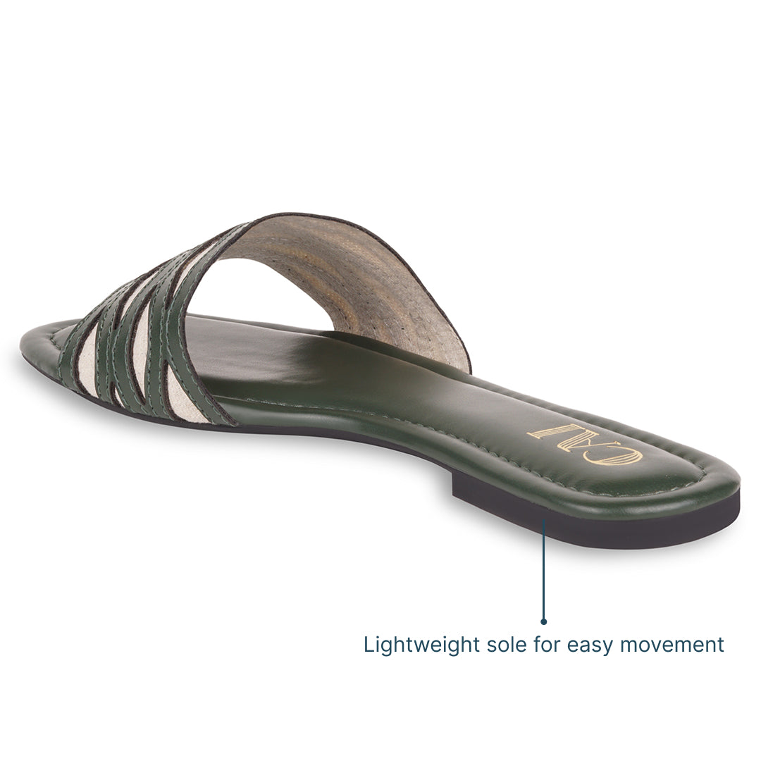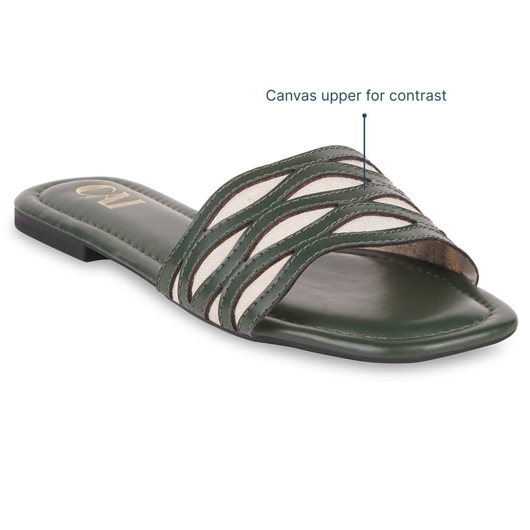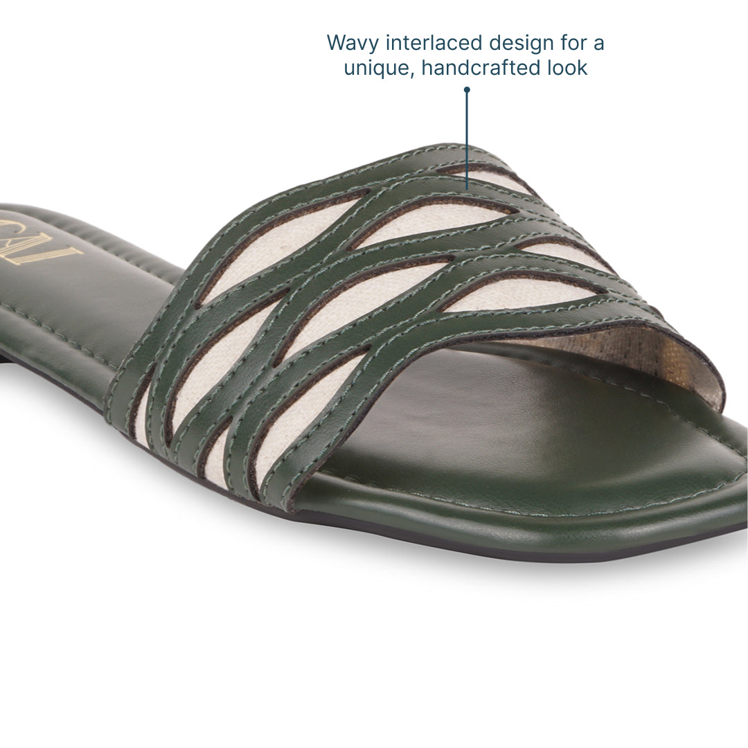 Bold yet refined, these FlowLine Green Flats are designed for everyday ease. Featuring wavy cut-out straps with canvas contrast detailing, the design adds visual interest while keeping the look light and breathable. A cushioned footbed and smooth finish ensure comfort through long days, making this pair a perfect balance of function and understated style for your everyday errands.