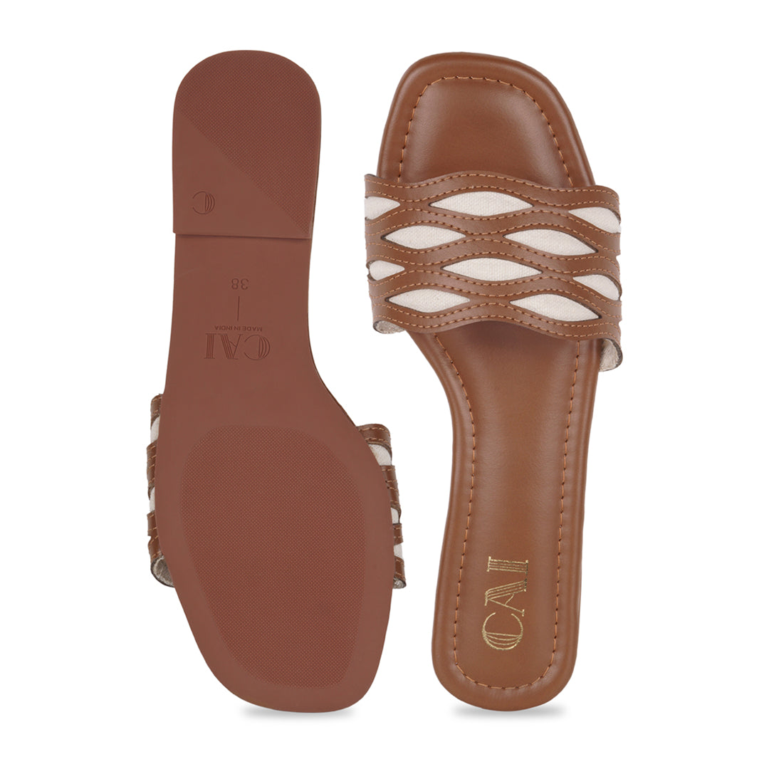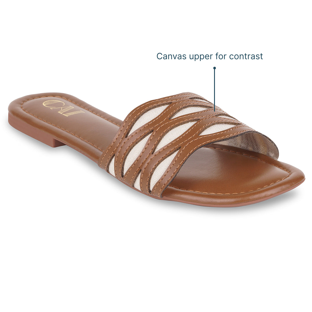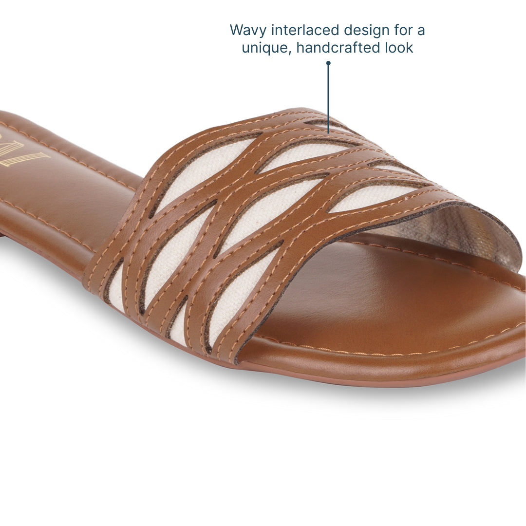 Effortlessly stylish with a hint of texture, these FlowLine Tan flats are designed for everyday ease. Featuring wavy cut-out straps with canvas contrast detailing, the design adds visual interest while keeping the look light and breathable. A cushioned footbed and smooth finish ensure comfort through long days, making this pair a perfect balance of function and understated style for your everyday errands.