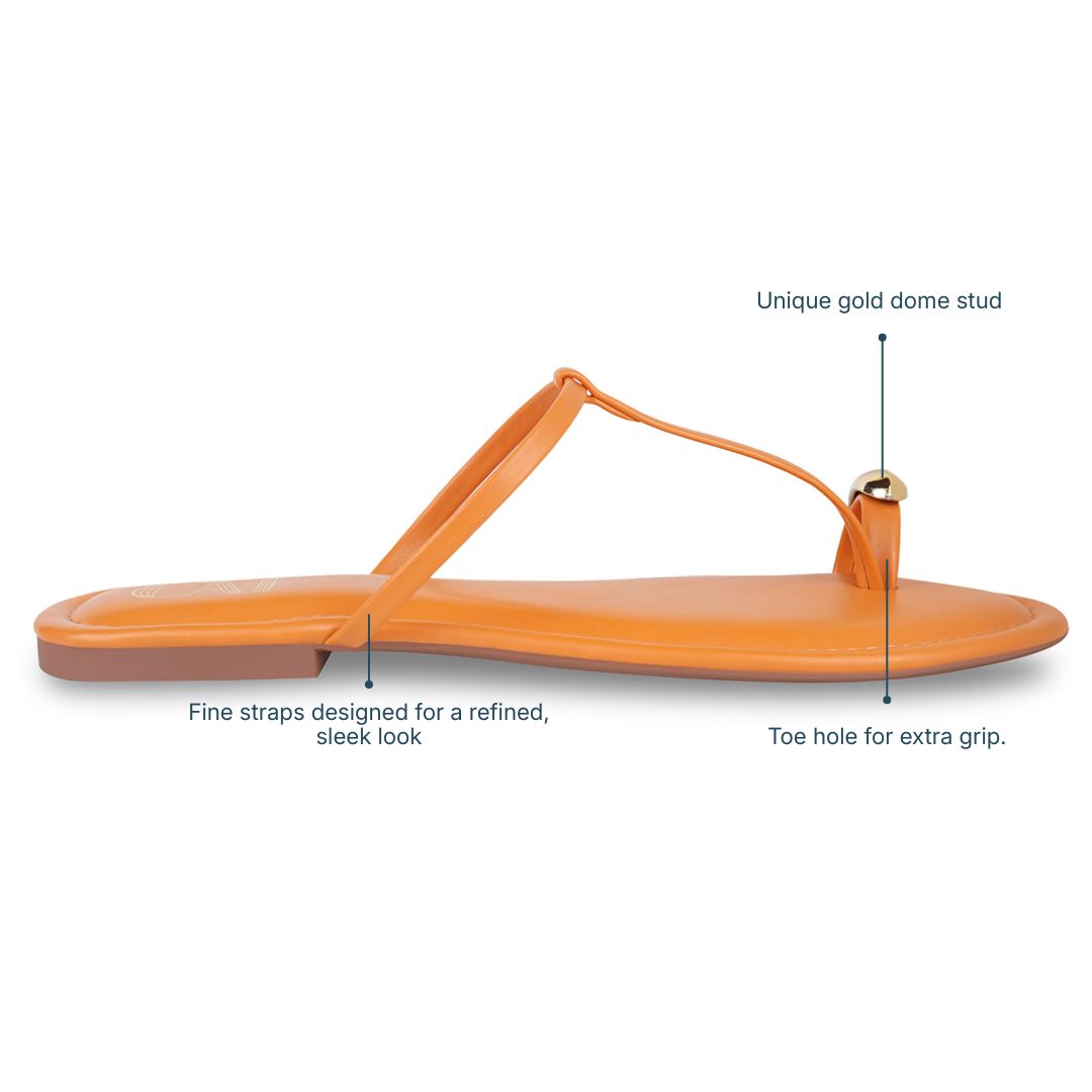 Delicate and refined, the Noor Orange flats features slim straps that create a sleek, elegant silhouette while offering a secure, comfortable fit. A subtle gold accent on the toe loop adds a touch of charm. Polished yet easy to wear, it’s perfect for elevated everyday styling.