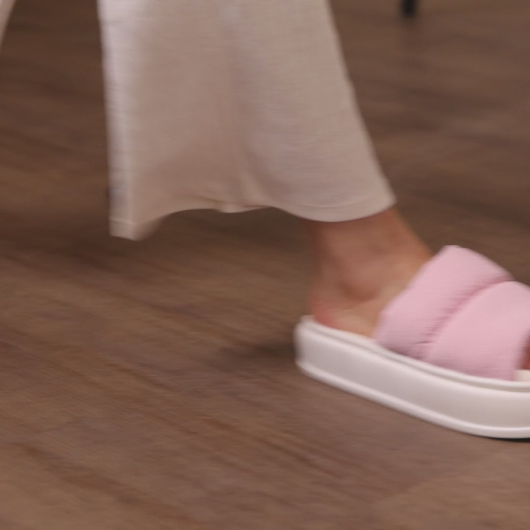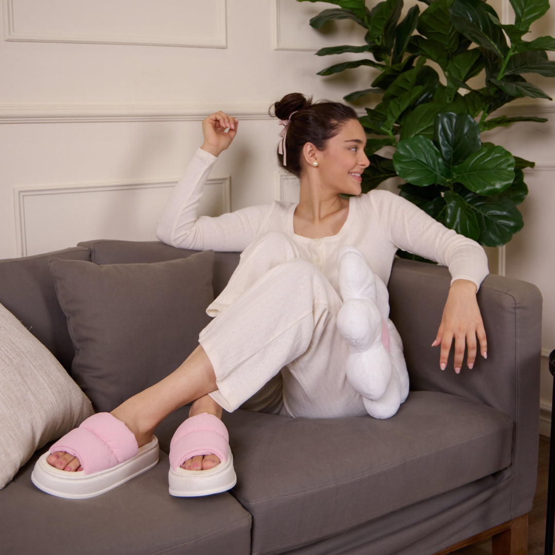2) Staycation Chic: Transform your home into a luxurious retreat by slipping into these spongy baby pink slip-ons, adding a touch of vacation vibes to your everyday routine.